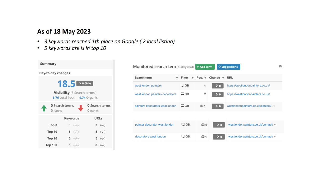 6. Ranking for brand name West London Painters fluctuated between 47-68 position
