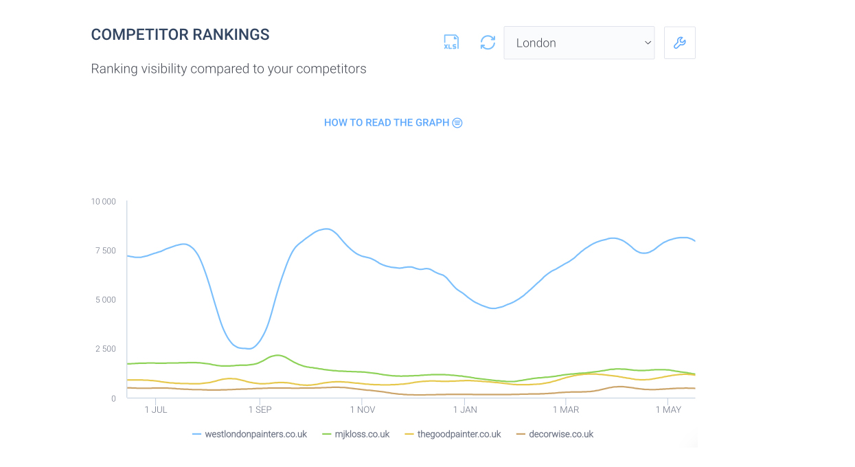 Here are graphs illustrating the progress of our website’s visibility compared to our main competitors.
